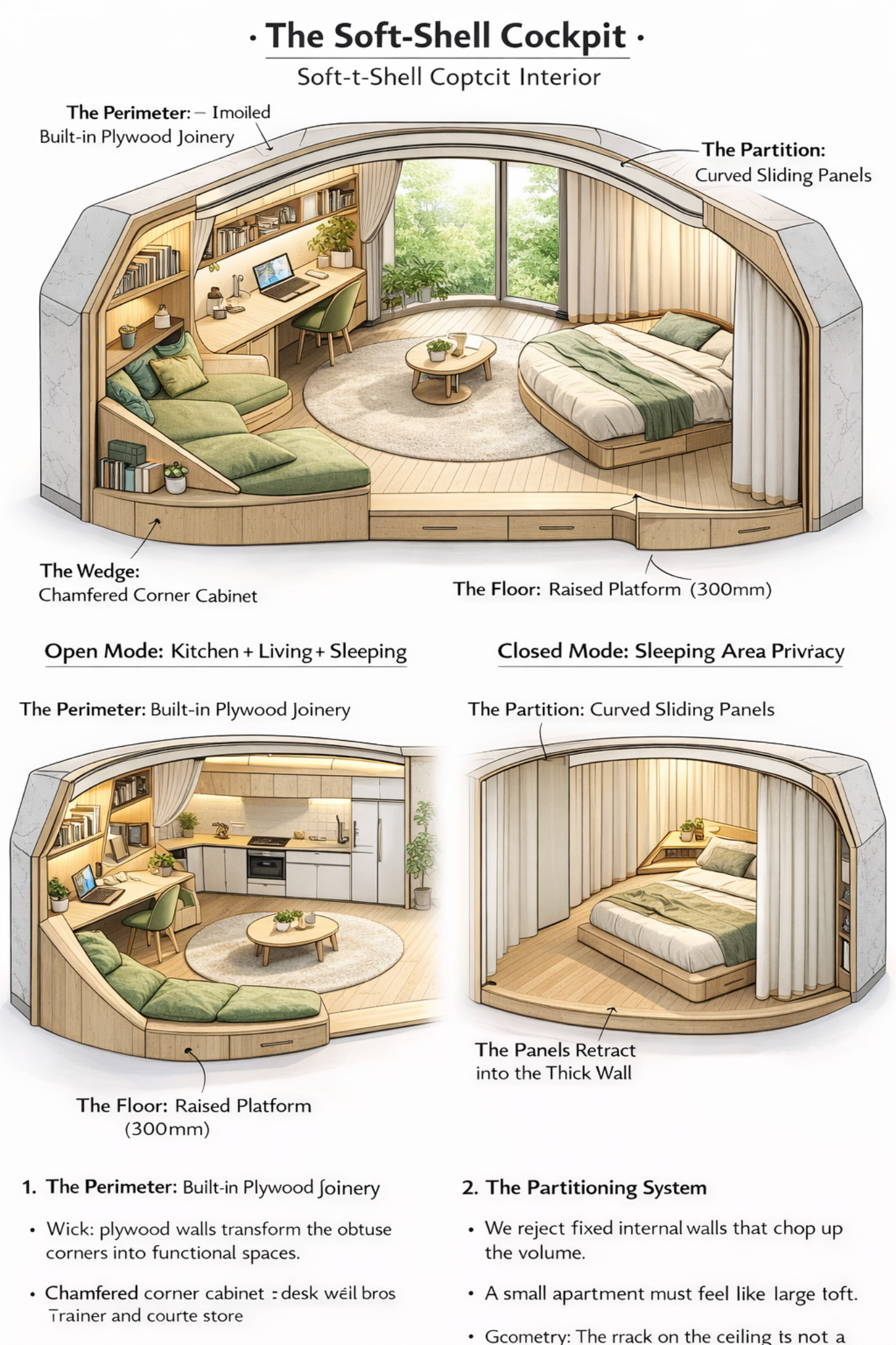 One AI agent pushed toward formal transformation — rejecting orthogonal defaults and questioning the rectangular prism as inevitability.